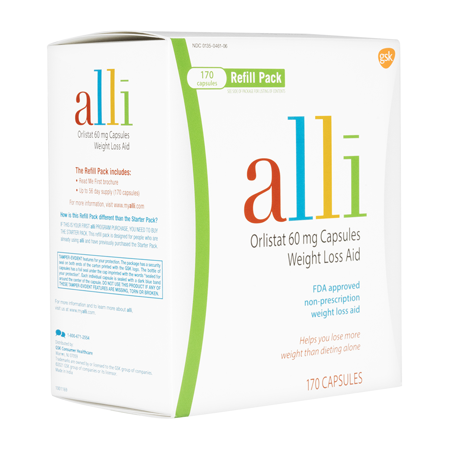 Active Ingredient (in Each Sealed Capsule) Orlistat 60 mg Inactive Ingredients FD&C Blue No. 2, Edible Ink, Gelatin, Iron Oxide, Microcrystalline Cellulose, Povidone, Sodium Lauryl Sulfate, Sodium Starch Glycolate, Talc, Titanium Dioxide 60mg