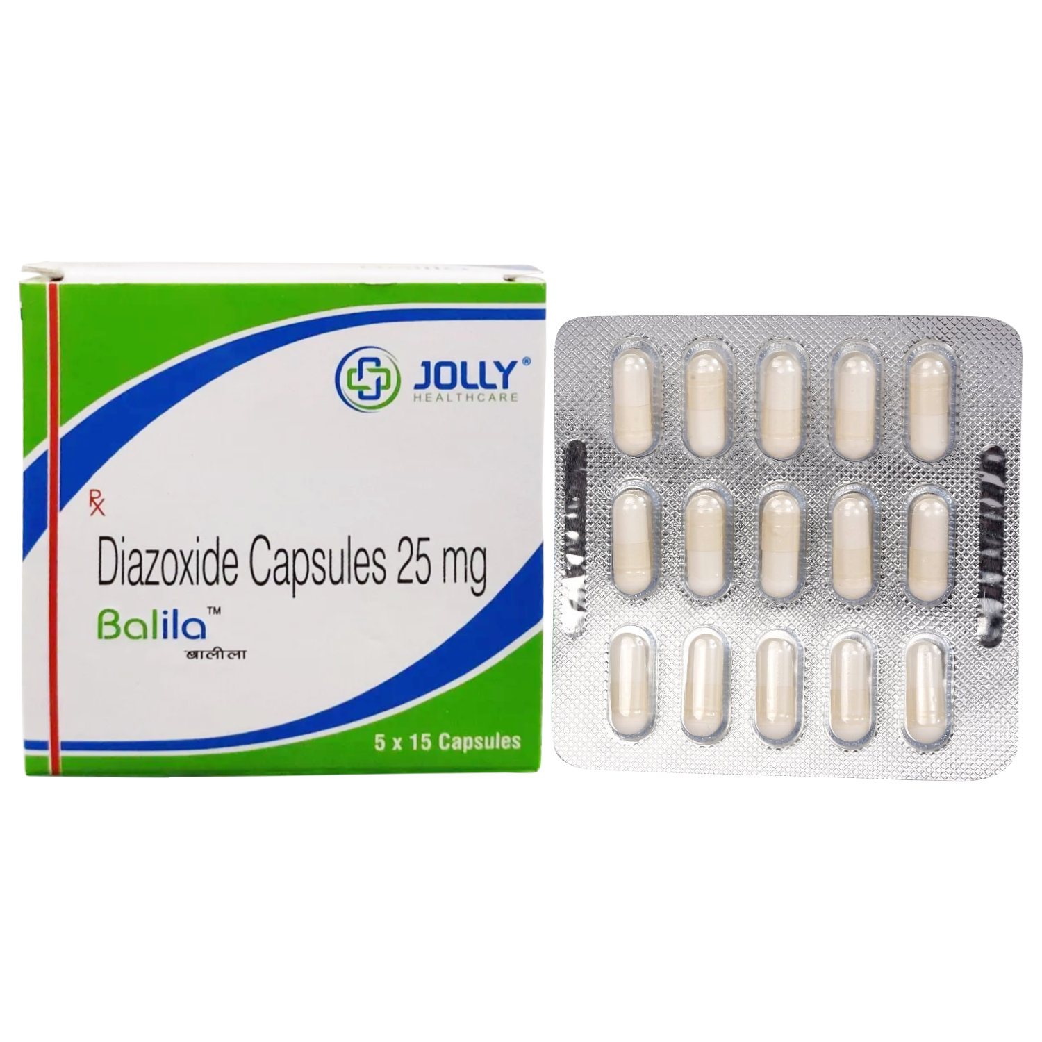 Each hard gelatin Capsule Contains: Diazoxide IP 25 mg, Excipients q.s.