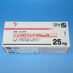 1錠中、ジクロフェナクナトリウム25mgを含有する。