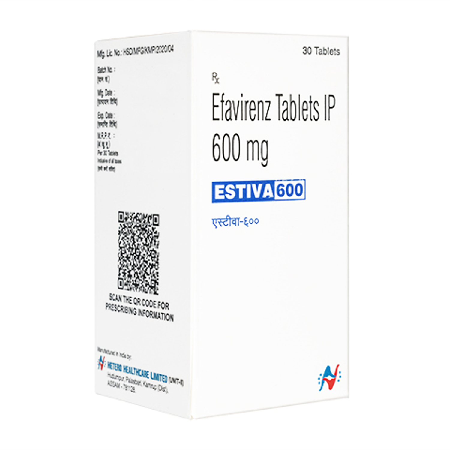 エファビレンツ錠。Hetero Healthcare社によるジェネリック。