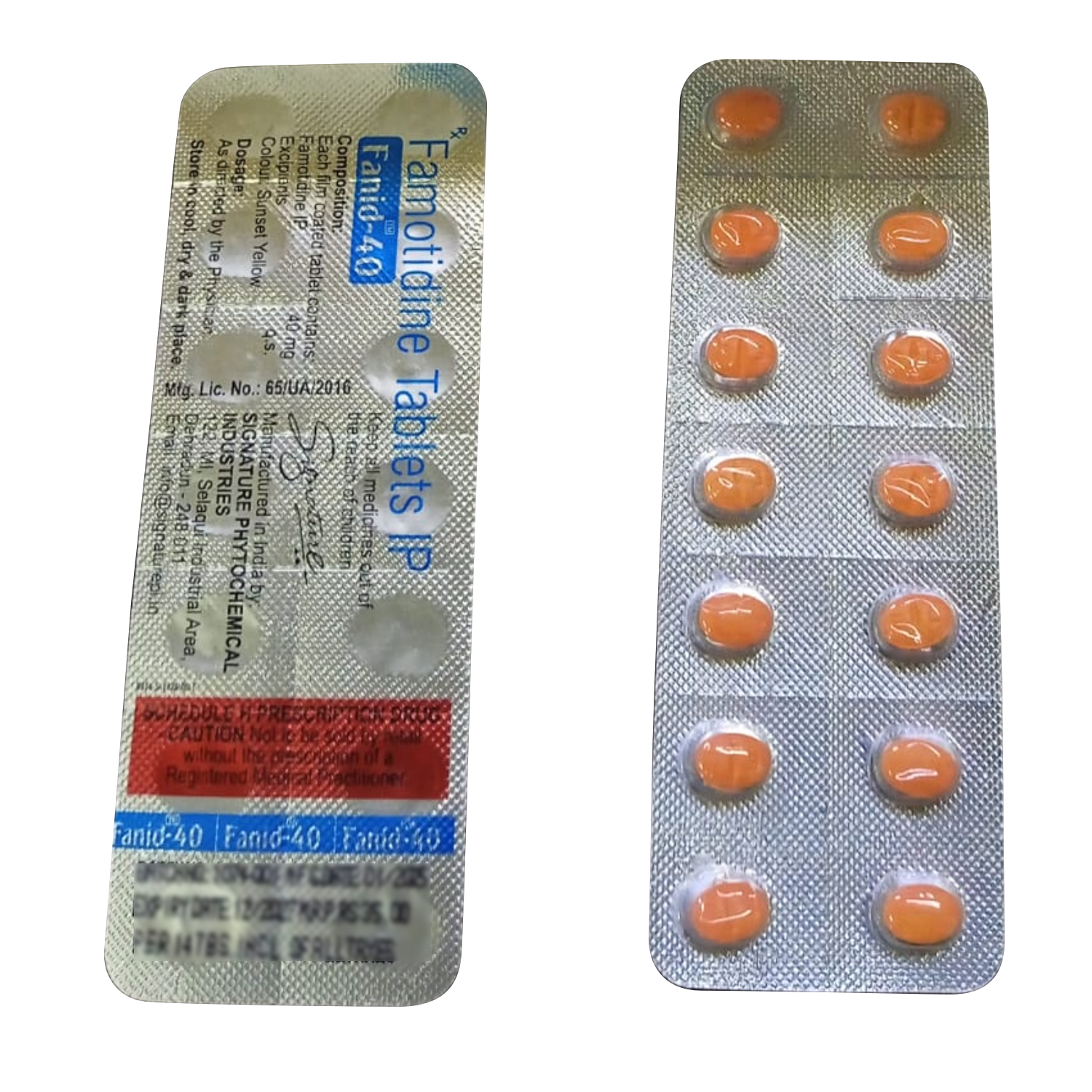 Each film coated tablet contains: Famotidine IP 40 mg Excipients q.s.