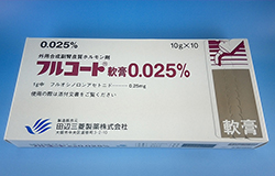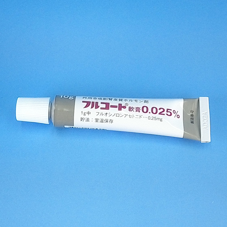 1g中:フルオシノロンアセトニド( Fluocinolone Acetonide)0.25mg 添加物:クエン酸、ブチルパラベン、プロピレングリコール、ラウリン酸ポリエチレングリコール、ラノリン、ワセリン