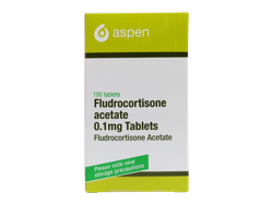 フルドロコルチゾン酢酸エステル錠。海外のAspen社によるパッケージ。