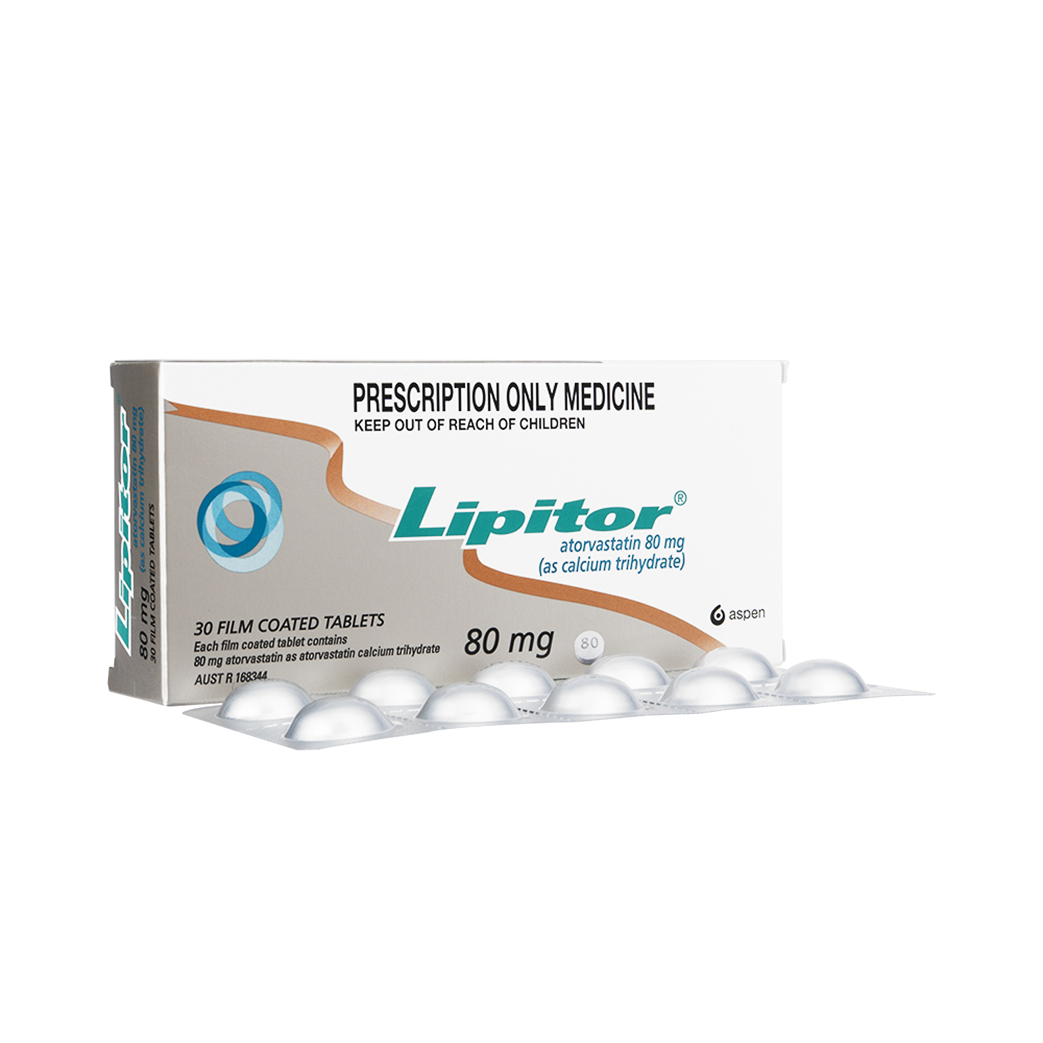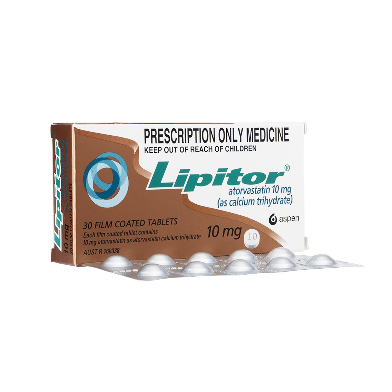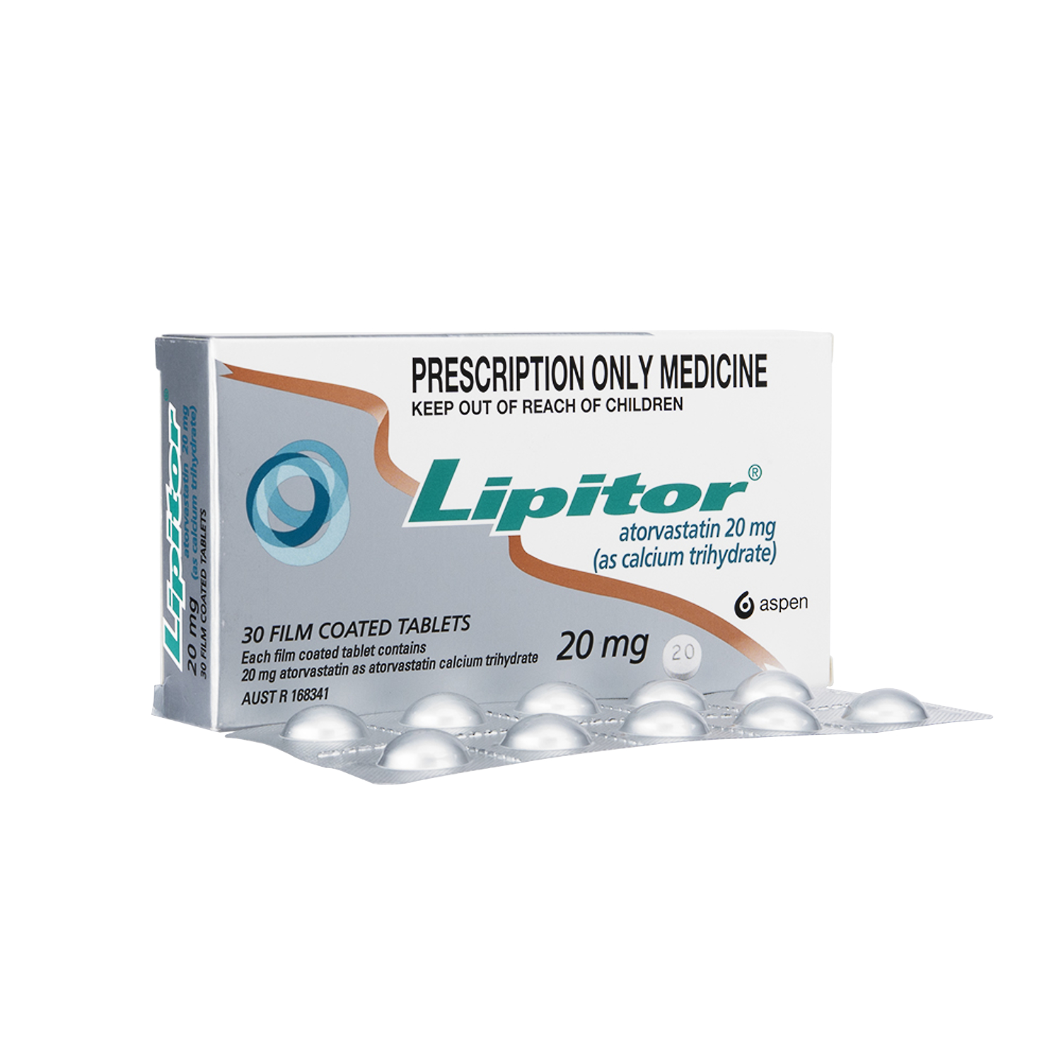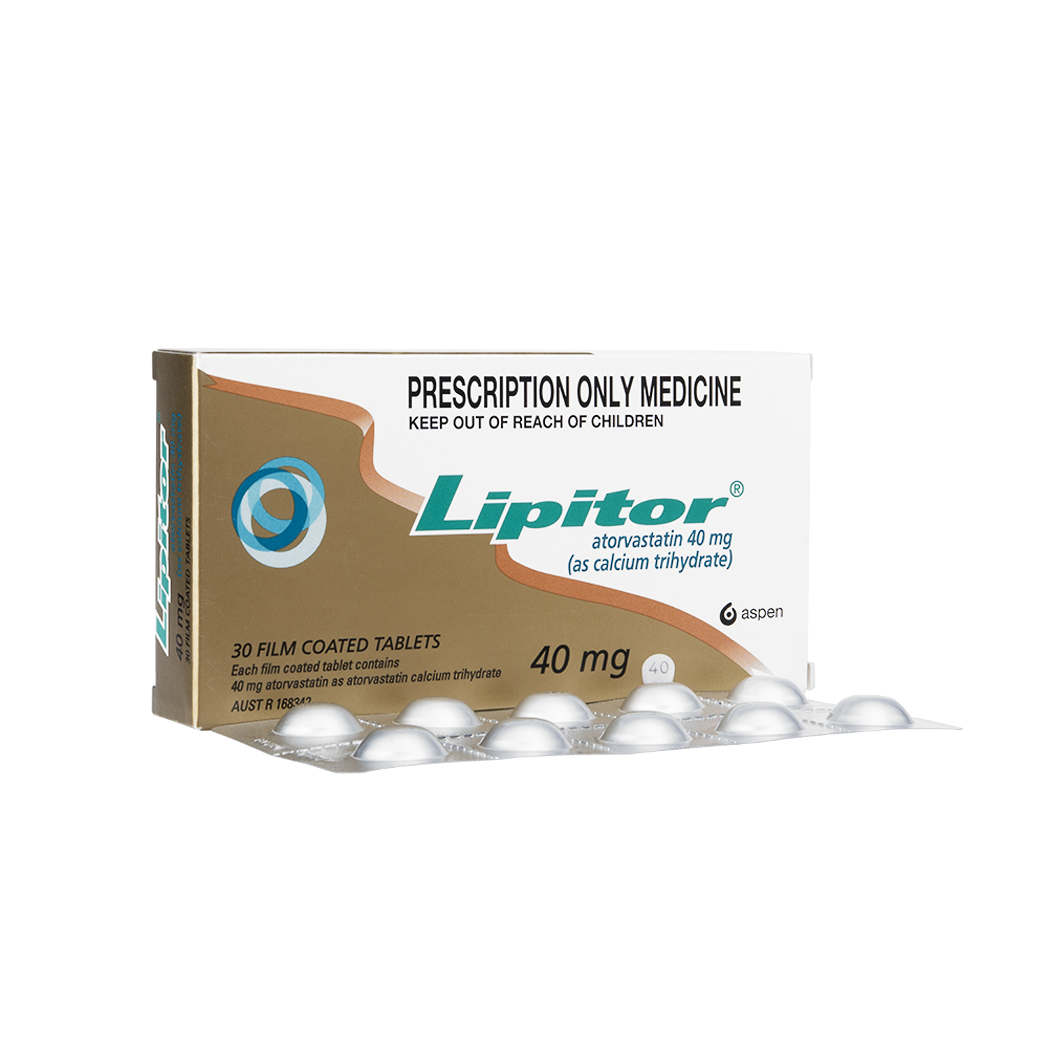 アトルバスタチンカルシウム水和物錠。Aspen/Pfizer/Viatris社によるパッケージ。