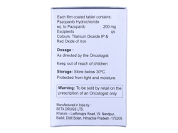 Each film coated tablet contains: Pazopanib Hydrochloride eq. to Pazopanib 200 mg