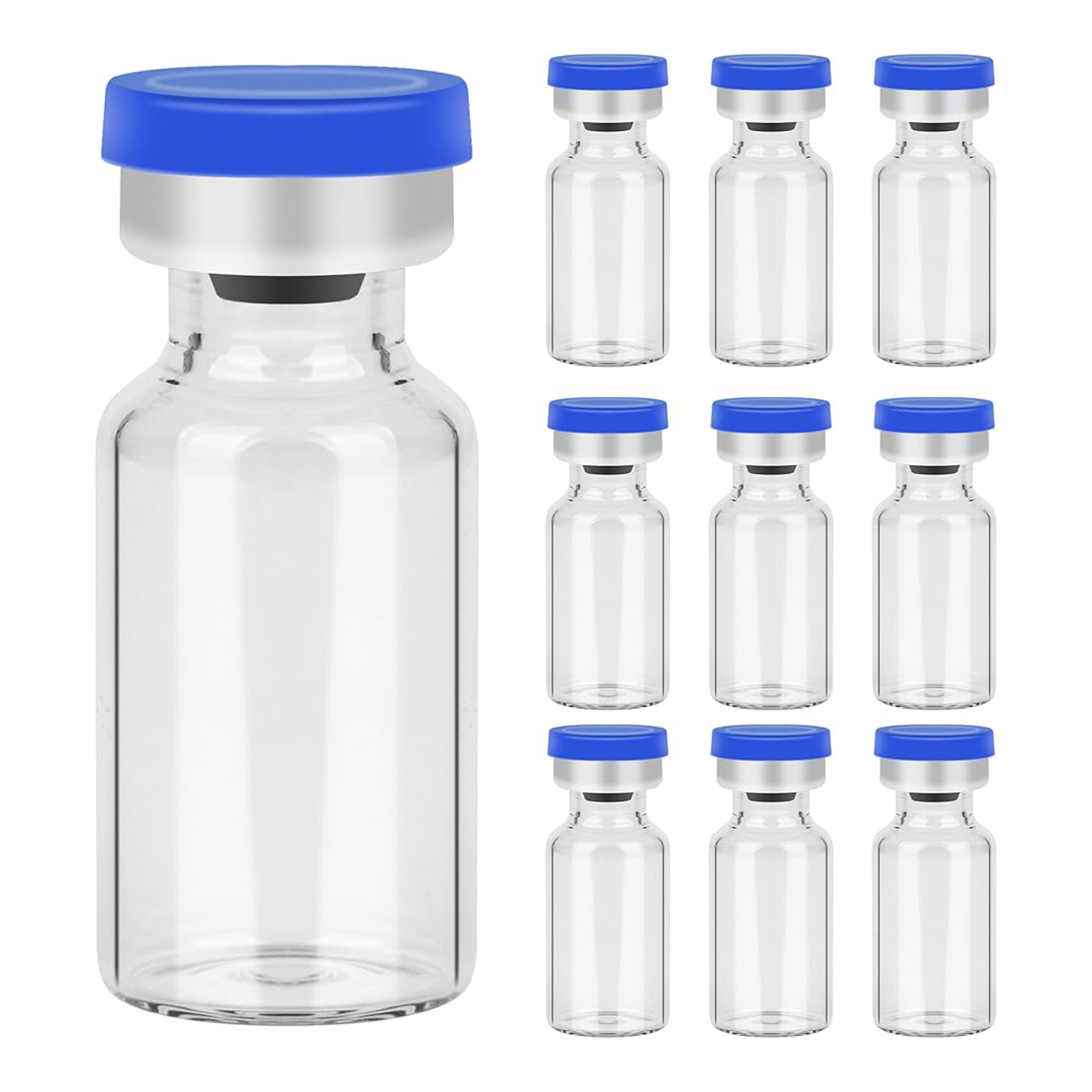 滅菌空ガラスバイアル。自己修復注入ポートとフリップトップキャップ付き。